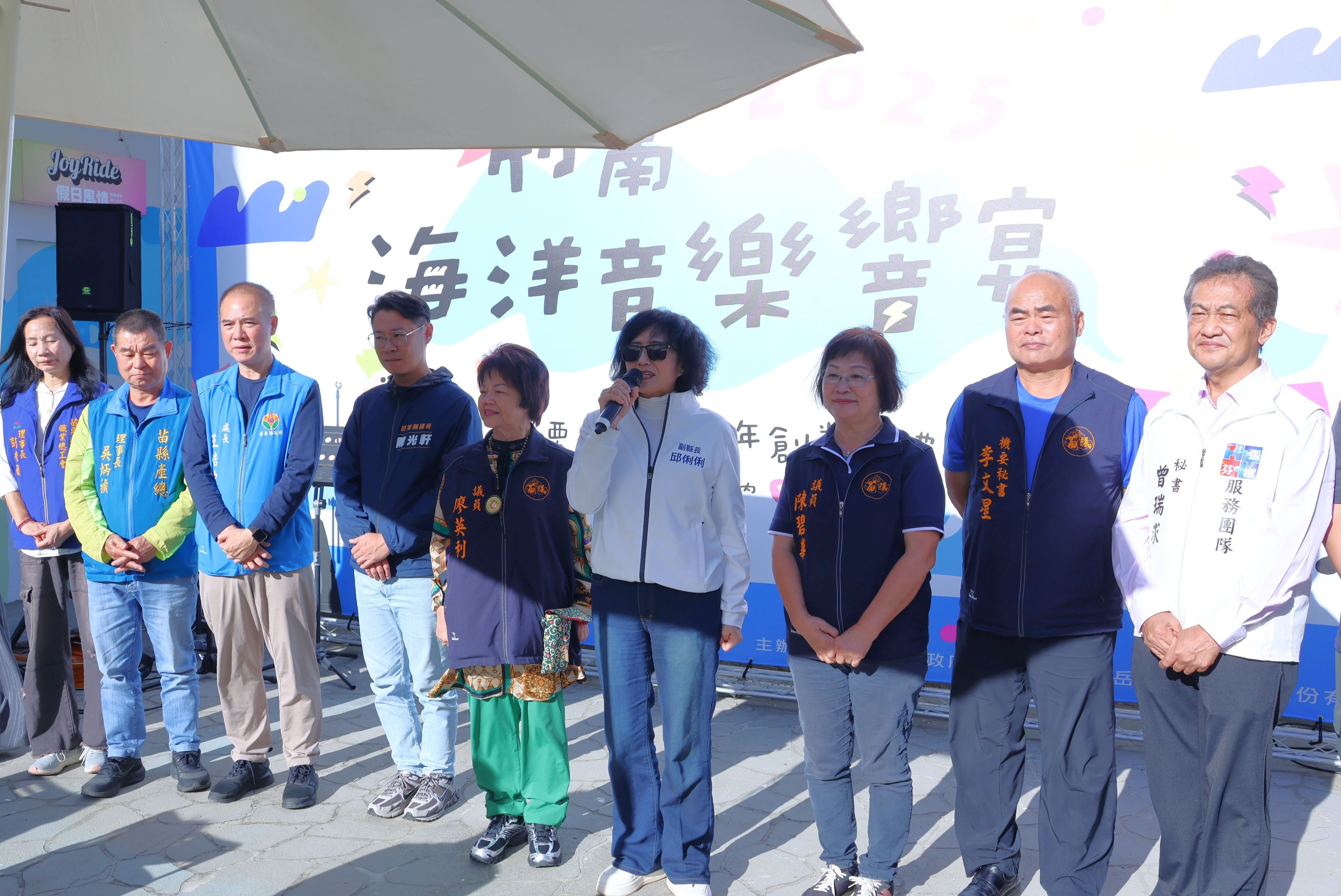 苗栗縣政府11月15日於海洋青年創業基地舉辦「2025竹南沙灘音樂饗宴」,副縣長邱俐俐到場歡迎各地遊客,肯定「海洋創客學校」以及青創業者的努力,強調未來縣府會持續厚植青年創業的能量,從創業資源、專業課程到創新平台,讓青年能在苗栗看見前景、擁有舞台、安心築夢。