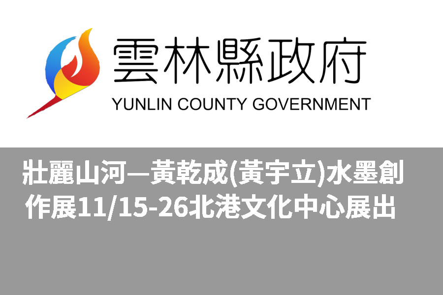 「壯麗山河—黃乾成(黃宇立)水墨創作展」展覽檔期於114年11月15日至11月26日(周一休館)於北港文化中心展出,雲林縣政府歡迎大家蒞臨欣賞。