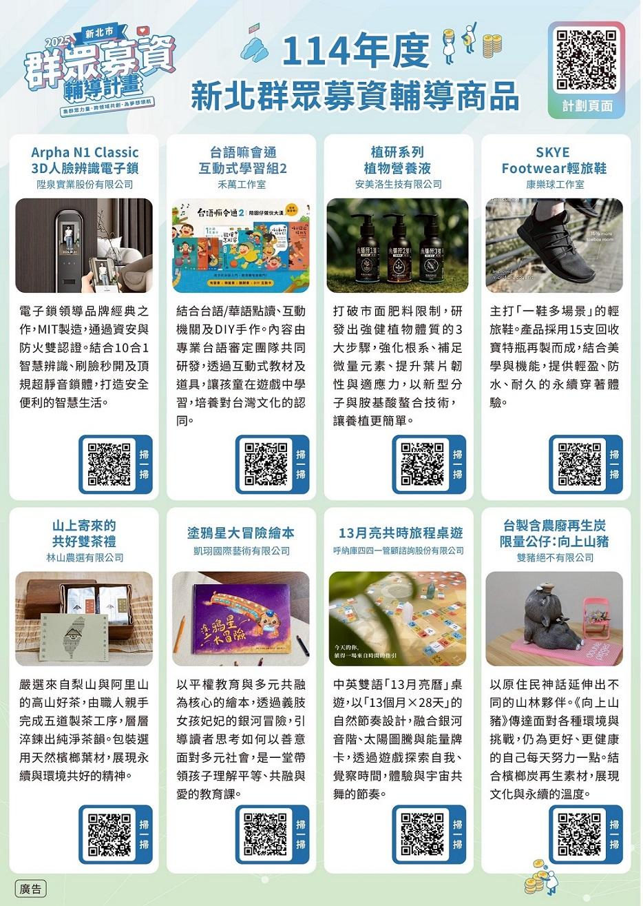 114年新北群募計畫刻正募資中輔導產品: