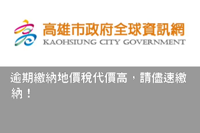 高雄市稅捐處表示,114年地價稅已於11月1日開徵,距離繳納期限截止日11月30日(因適逢例假日,順延至12月1日),只剩沒幾天了,還沒有繳納的民眾請儘速繳納,如果是申請委託金融機構或郵局轉帳繳稅者,請務必於12月1日24時前預留應納稅額之存款以備扣款,如有不足,請儘速補足,以利轉帳納稅。
