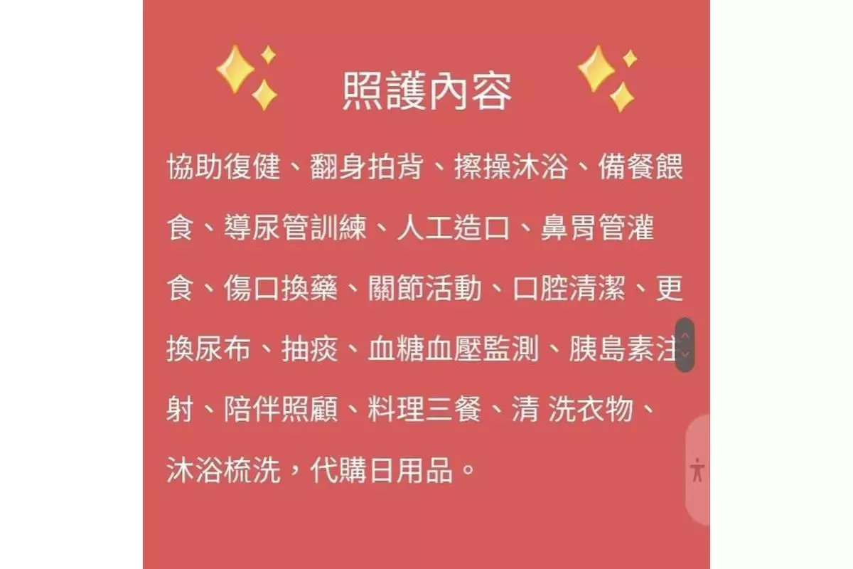 ※提供台南、高雄、屏東、台中、台北、新北等全台長短期醫院照護與居家照護服務。