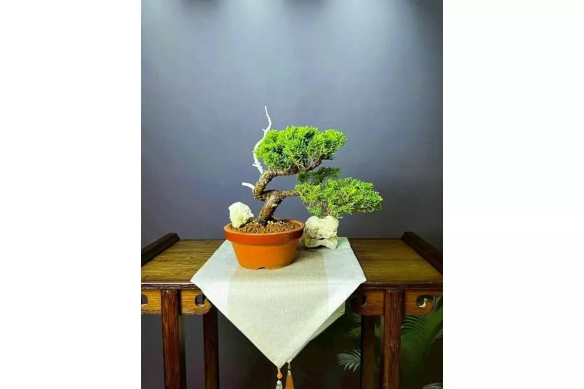 真柏盆栽 — 象徵堅毅與長壽,樹形蒼勁有力。