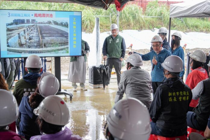 「下大雨時,不再擔心家門口變成小河流。」這是鳳鳴地區居民最期待的改變。今(18)日,新北市長侯友宜前往「東門溪排水改善暨鳳鳴滯洪池工程」視察,工程進度已突破77%,預計於115年2月底完工。屆時,鳳鳴滯洪池可蓄洪約6.2萬噸、東門溪護岸達25年防洪保護標準,可改善桃園市龜山工業區及鄰近地區長年淹水問題,讓兩市居民在大雨來襲時能更安心。