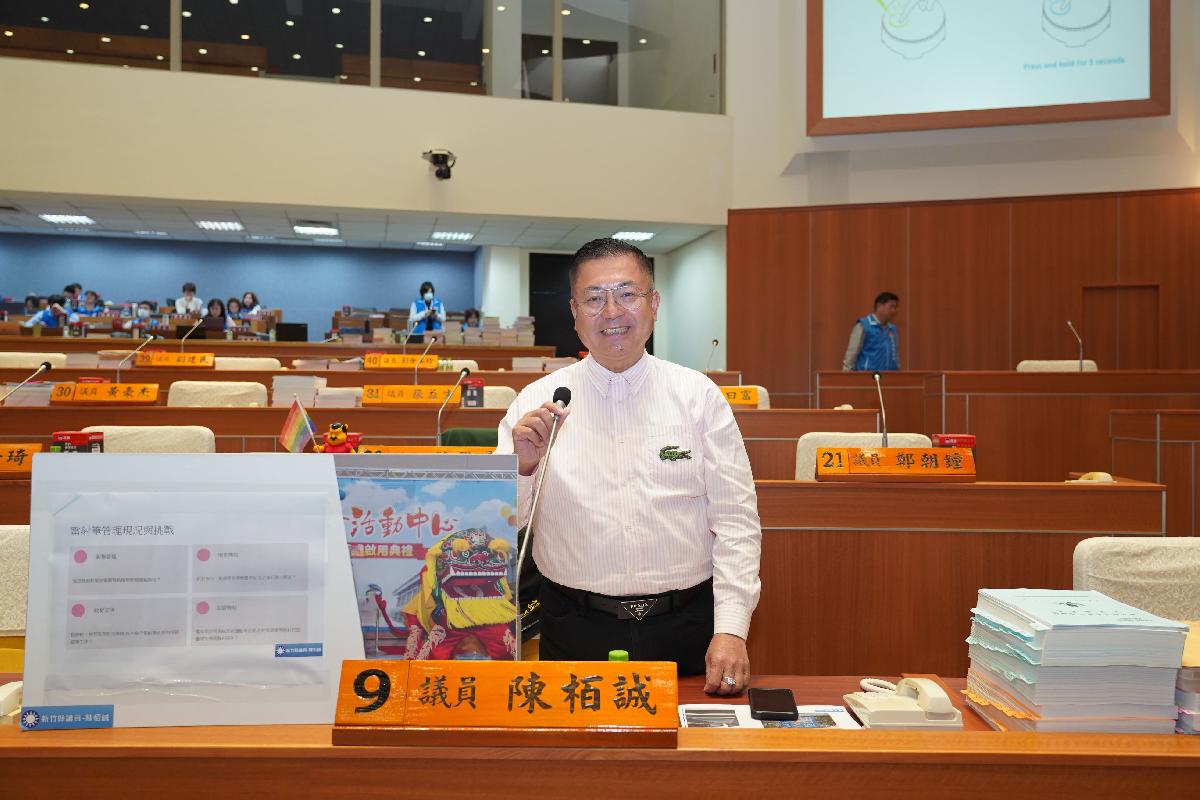 新竹縣議員陳栢誠今(18)日在縣議會第20屆第6次定期會質詢中,關心珍貴客家獅技藝傳承應該要編列專案預算支應、湖口鄉勝利路拓寬要加快進度以解決塞車之苦,以及雷防筆濫用造成公安、視力健康危害等議題。