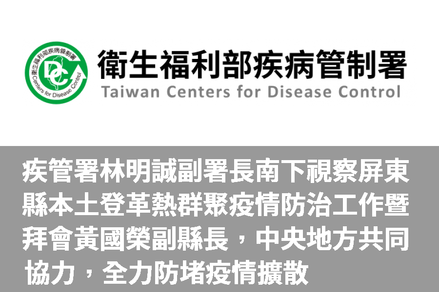 衛生福利疾管署林明誠副署長南下視察屏東縣本土登革熱群聚疫情防治工作暨拜會黃國榮副縣長,中央地方共同協力,全力防堵疫情擴散
