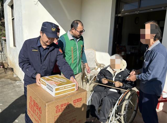 福基所所長徐瑞榮於轄區探訪時,發現李姓民眾因去年因病,無法外出工作,亦無法自理,所有開銷僅靠同居人獨立負擔,必須外出工作無法在家照顧李女,故為其聘請看護照料,經濟壓力龐大,徐所長在發現狀況後,立即通報「張榮發慈善基金會」,該基金會於評估後隨即派專員與徐所長共同前往關懷慰問,並致贈善款及提供生活物資,讓李女能夠無憂的過好年,李女對於基金會、村長及警方的協助表示由衷的感謝。
