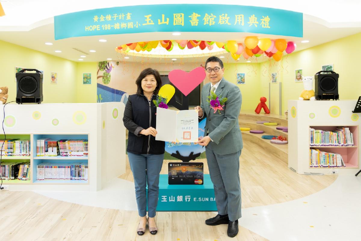 玉山銀行與財團法人玉山志工社會福利慈善事業基金會長期推動教育公益,並在全國各地小學設立「玉山圖書館」,為學童營造優質的學習環境,第198所「玉山圖書館」落腳台中市清水區槺榔國小,昨(18)日隆重舉行啟用典禮,市府教育局副局長賴緣如到場,對玉山銀行與基金會長年深耕教育公益、持續挹注資源表達感謝之意。