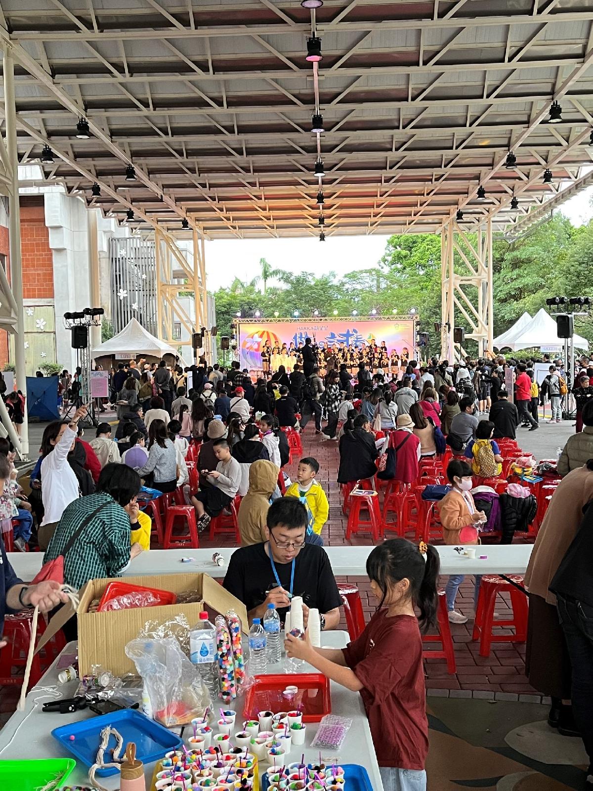 活動現場以濃郁的「海客文化」為視覺基調,從活動同名主題曲〈大膽向前GO〉的律動暖場,到孩子們接力登台的各式藝文表演,整個會場洋溢勇於探索、自信展現的熱力氛圍。為呈現社團豐沛的學習能量,也特別打造「HAKKA星光島」靜態博覽會展區,各校以展板與照片呈現平日練習的點滴,彷彿一條專屬孩子們的星光大道,讓家長與市民朋友可以看見孩子從基礎練習到舞台展演的成長軌跡。現場亦展出夏令營隊作品,從各式創作中可見學生對文化學習的專注與熱情。