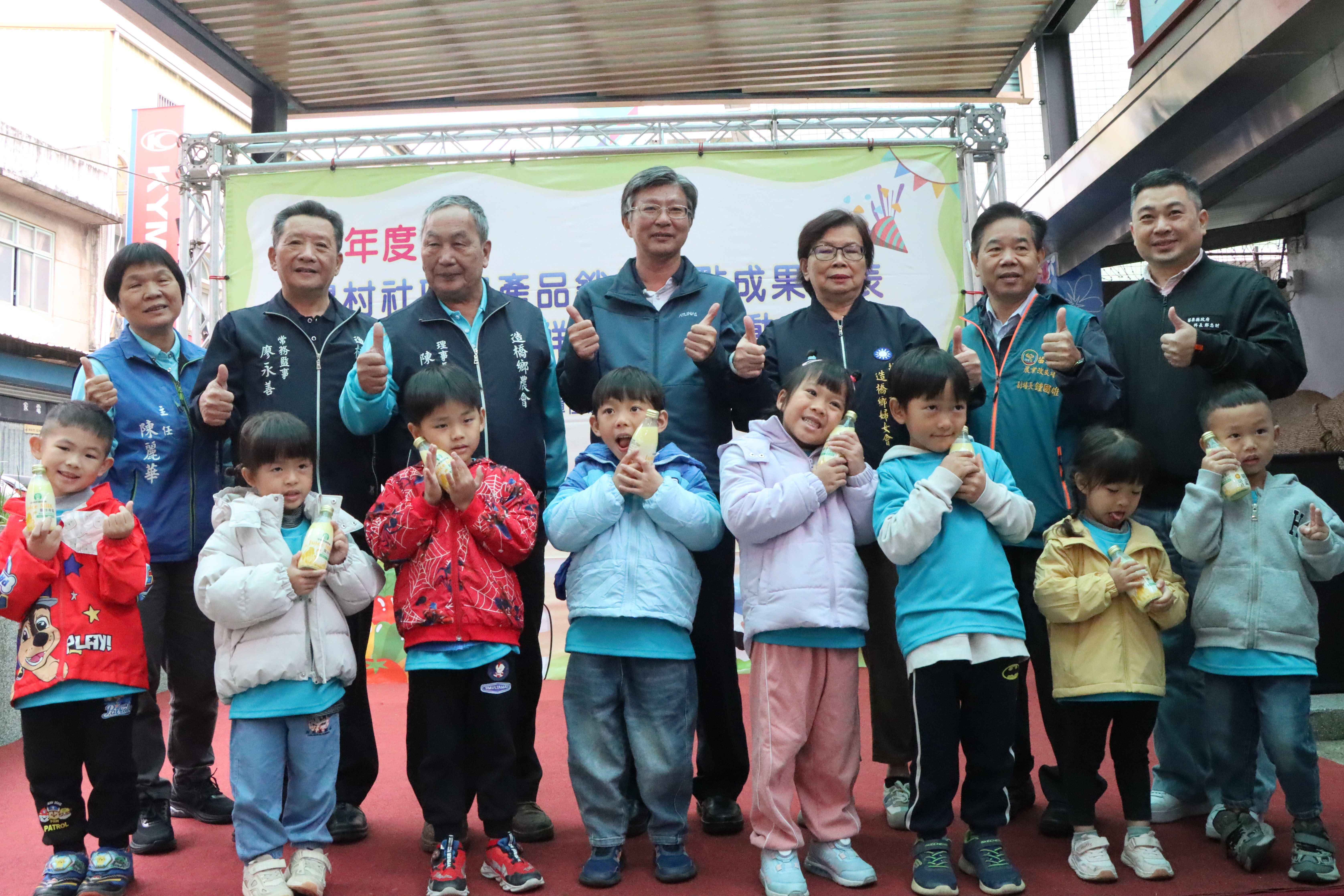 副縣長邱俐俐19日偕同農業處畜產科長鄭忠財、農業部農糧署北區分署長林傳琦以及苗栗區農業改良場副場長鍾國雄等各界代表共同見證造橋鄉農會多年深耕的成果。活動現場除展售在地農特產品外,亦結合國產鮮乳推廣,安排鮮奶試飲、親子闖關及手作互動,寓教於樂,吸引許多家庭踴躍參與。