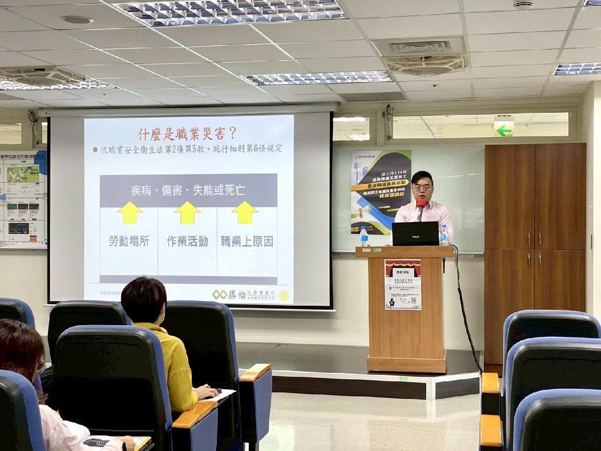 活動邀請具豐富實務經驗勝綸法律事務所李柏毅律師主講「職災勞工保護及權益認識」,從職業災害的定義、通勤職災爭議案例到勞工與雇主間的補償責任,解析勞基法與災保法的重點。另也邀請臺大醫院環境及職業醫學部陳宗延醫師以「永久失能與職災勞工權益」為題,分享受傷後醫學實務中對勞動力減損之評估方式,提到職災勞工除生理復健外,心理與社會層面的支持同樣關鍵,應透過跨專業團隊協助,促進勞工重建信心,逐步回歸職場。