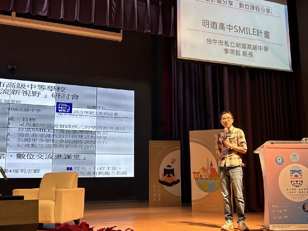 韓國 IACE 資深專員SUEYOON LEE今天以「數位學習在國際教育合作中的運用」為題發表專題演講,捷克查理大學教授Tomáš Hák及Svatava Janoušková 則分享「全球永續指標在地化」教育實踐,從國際視角探討教育永續與數位連結。另有多位台中市師生成果發表,包括惠文國小及立人國中分享「國際筆友計畫」、明道高中「SMILE英語共學計畫」及西屯國小「概念圖式 RPG 數位學習」案例等,展現台中師生跨國合作與雙語教學成果。