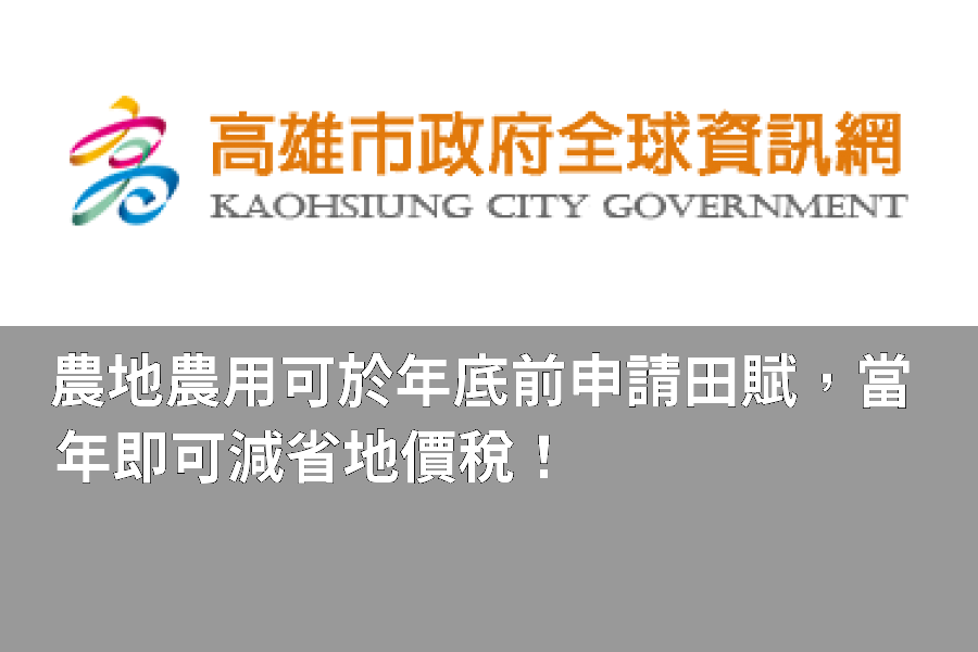 高雄市稅捐稽徵處表示,農業用地供農業使用,當年度提出申請,經稅捐機關審查核准後,當年度即可適用課徵田賦(目前停徵),等同免繳地價稅。