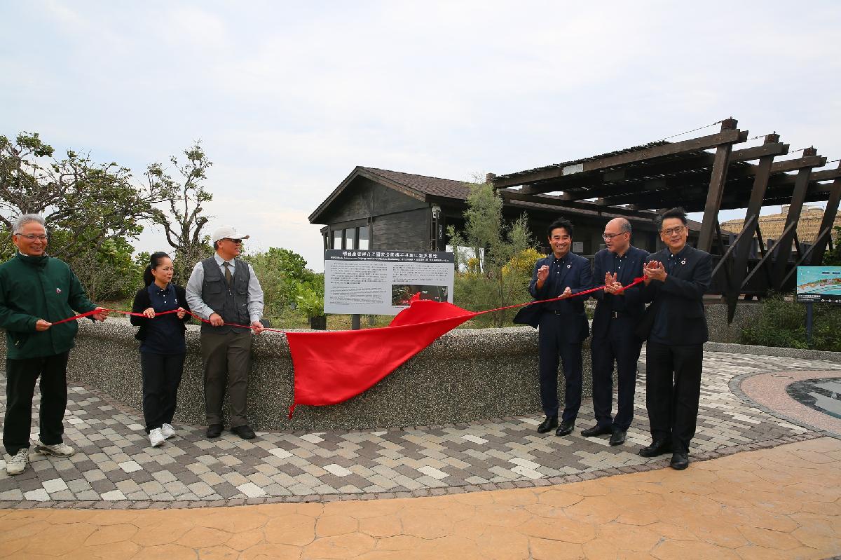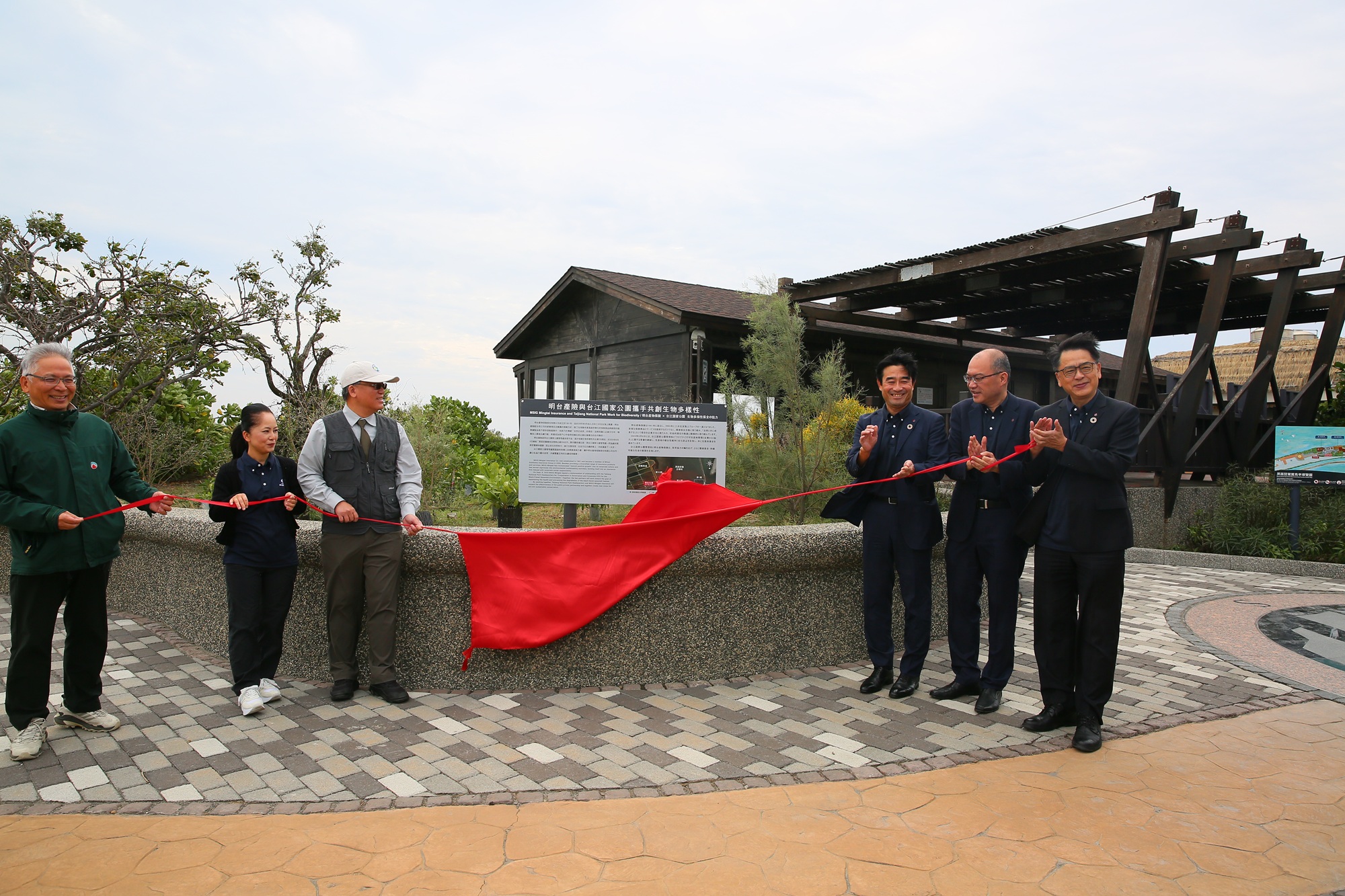 台江處長張順發表示,明台產險是台江國家公園第1個企業ESG合作夥伴,自從去(113)年9月6日簽署企業ESG合作備忘錄後,該公司隨即主動投入相當多資源,協助台江進行黑面琵鷺賞鳥亭視訊設備優化更新、獎勵生態友善棲地魚塭營造、員工積極參與台江生態旅遊及環境教育課程等事項;未來還計畫支持台江處在七股臺區鹽田濕地預定辦理之棲地水文復育、紅樹林增匯等相關保育工作;因此,特別在遊客眾多的黑面琵鷺賞鳥亭前設置「攜手共創生物多樣性」合作標誌,表彰該公司以實際行動實踐環境保護、社會責任及公司治理的永續經營卓越貢獻!