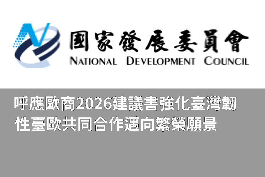 國發會詹方冠副主委今(20)日代表政府接受歐洲商會「2026建議書」,於會中感謝歐洲商會長期深耕臺灣,扮演鏈結臺歐經貿產業合作交流的重要平臺。今年歐洲商會建議書:「變局中淬鍊台灣韌性」,提出的前瞻性AI監理政策、能源安全與韌性、多元與韌性的勞動力等建言,詹副主委表示與我國當前推動的「AI新十大建設」、「淨零轉型」、及「國際攬才留才」等政策方向密切相關。