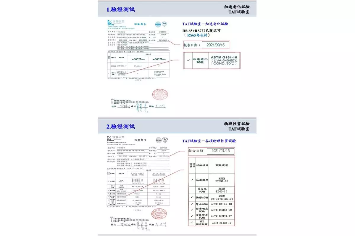 此產品經過嚴格測試,具備長效耐水解、抗酸鹼和防腐蝕能力,其基礎材料RS-65的高分子載體具有極佳的防護特性。RS-737同時符合歐盟RoHS指令,無重金屬污染及甲醛排放,是一種無溶劑且環保的高分子材料,在延長建築物壽命的同時,也提供了出色的抗熱保護。