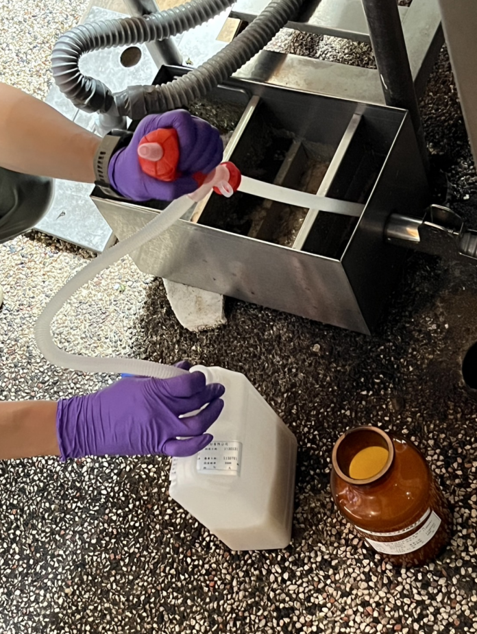 「韓國豬肉湯飯金春喜韓廚」王副理表示,在接獲衛工處宣導後,立即安裝油脂截留器,實際使用發現每日可攔截大量油脂,不僅減輕公共管線負擔,也改善周邊環境衛生,認為安裝油脂截留器是餐飲業者應有的標配,也是應履行的社會責任,避免公共污水下水道的堵塞。