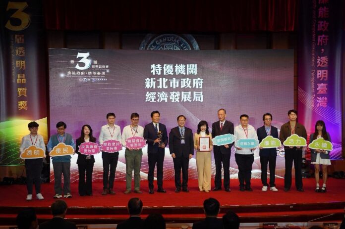 法務部於今(25)日舉辦「第3屆透明晶質獎」頒獎典禮,新北市政府經濟發展局以機關整體廉能經營成果榮獲「整體廉能作為」類特優機關殊榮,由新北市副市長朱惕之及經發局長盛筱蓉代表接受表揚。該獎項為政府機關廉政透明治理的最高榮譽,此次得獎不僅肯定經發局長期深耕廉能治理與便民創新的努力,也展現新北市在推動公開透明施政上的卓越成果。