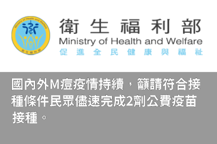疾管署提醒,M痘的潛伏期可長達21天,部分個案在症狀出現前1至4天即可傳播M痘予他人,所以接種疫苗為目前最有效的預防方式。目前疫苗庫存仍充足,全國共278家合作醫療院所可提供公費M痘疫苗接種服務,呼籲符合接種條件民眾,包括:近1年有風險性行為者(例如:多重性伴侶、性交易服務者、於營業場所發生性行為者等);過去曾罹患性病;或性接觸對象有前述任一情形者等儘速完成2劑公費M痘疫苗接種。