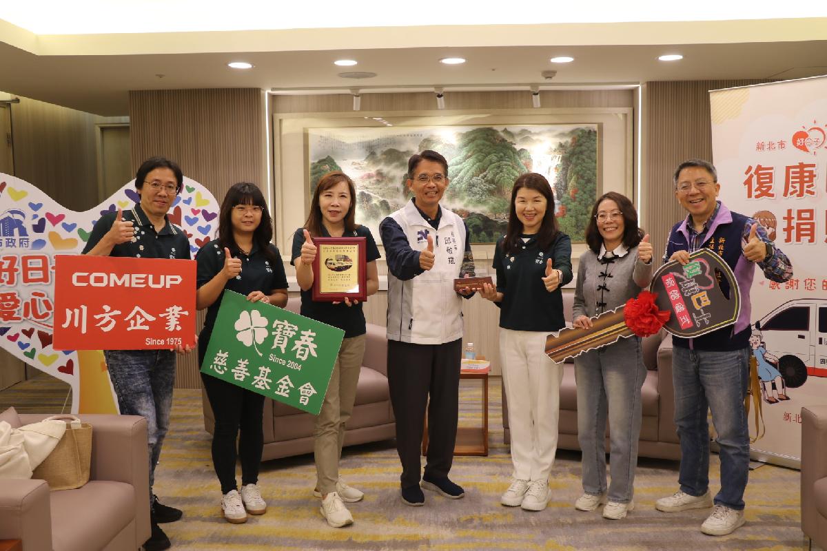 寶春基金會與川方企業25日捐贈新北市第4輛復康巴士,且為雙乘坐位。寶春基金會執行長陳婷婷坦言,受到美國川普總統調高關稅影響,企業經營克勤克儉,但信賴新北市好日子愛心大平台的品牌,同仁也常分享在汐止國泰醫院看到寶春幾號復康巴士,覺得可以造福身障朋友及有需求者,因此基金會仍會結合川方企業,持續在新北市行善。