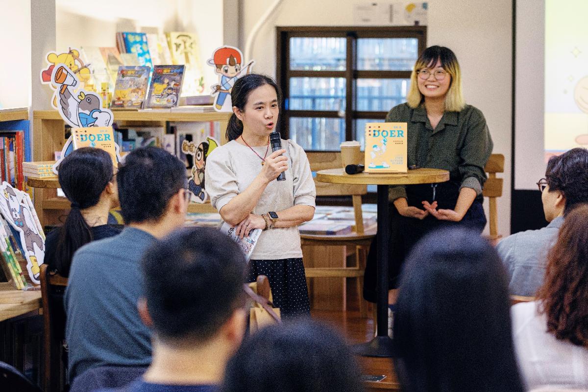本次新書發表會邀請兩位曾參與計畫的行動者,分享實踐經驗。玉鳳曾於2020、2021年參與be a DOER計畫,從新移民視角出發,挖掘大稻埕的越南風景,帶領參與者走訪市場、青草行等店家,透過生活體驗與地方連結,呈現多元文化在地共生的樣貌。藝術家靖婷則是進入中正區的龍口市場,透過與社區小朋友的藝術共創,讓市場的回憶可以被保存在不同世代的心中。