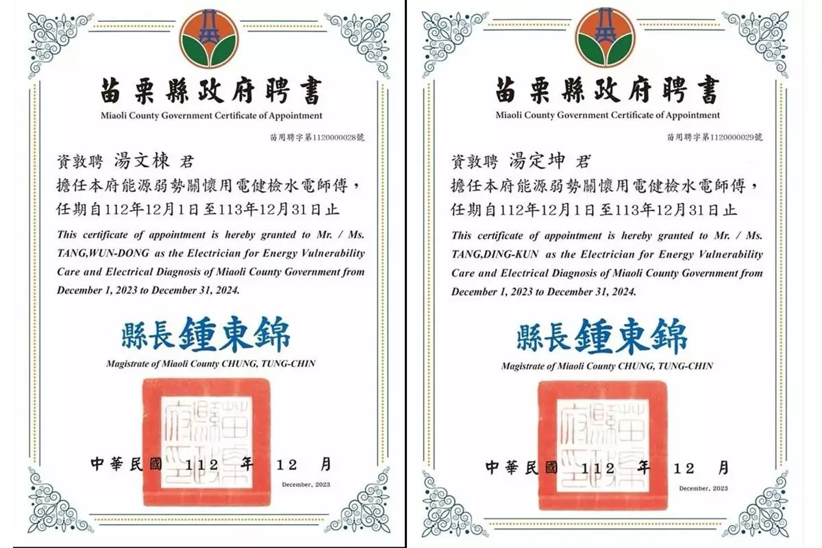 苗栗在地服務多年,至今堅持品質、安全、服務、商譽為首要經營理念。