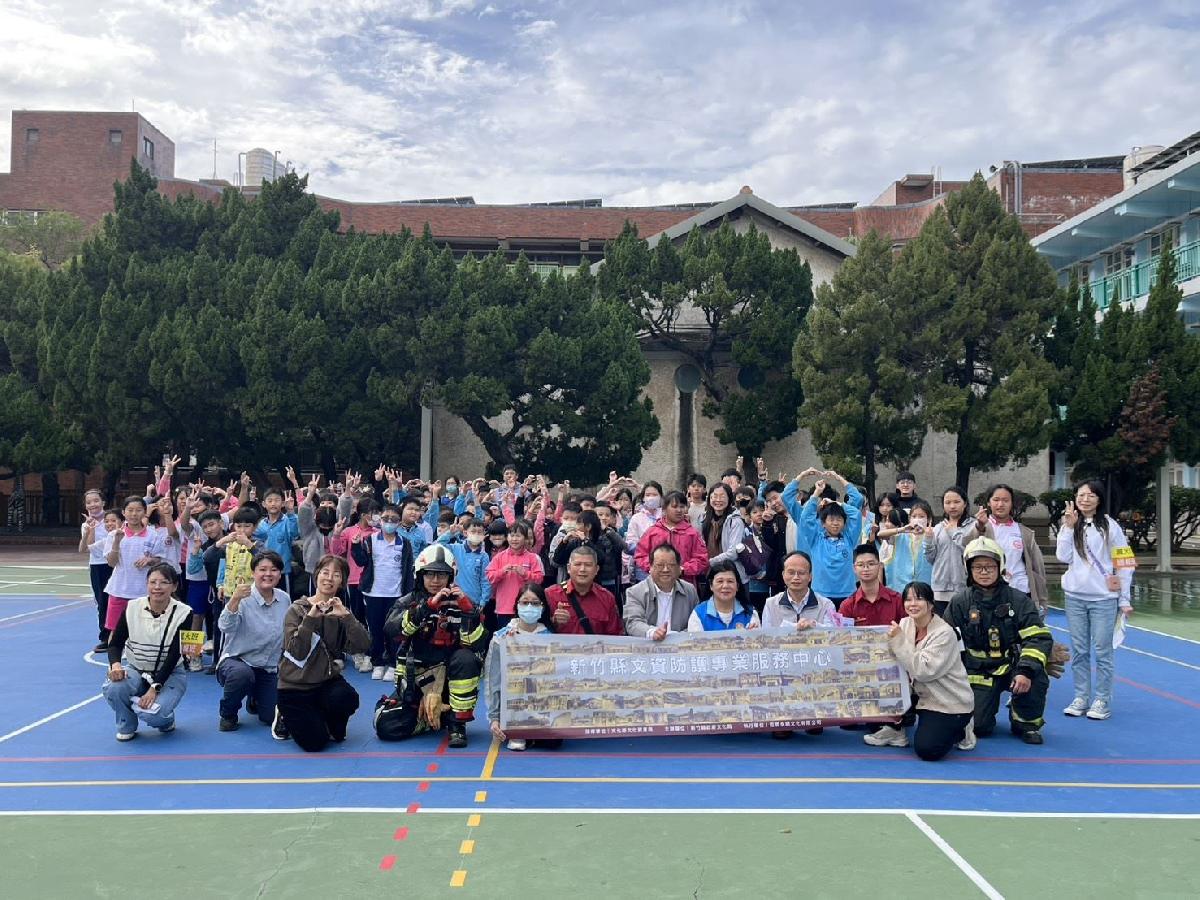 新竹縣政府跨局合作,由文化局、教育局、消防局及湖口消防分隊協助新湖國小完善校園文化資產防災計畫,今 (27日)舉辦縣定古蹟「新湖口公學校講堂」防災演練與教育推廣活動,強化公部門及校方的古蹟防災與搶救應變能力,透過師生參與演練及實地觀摩,讓文化資產防災教育從小學開始紮根,偕手守護校園文資價值的意識與行動。