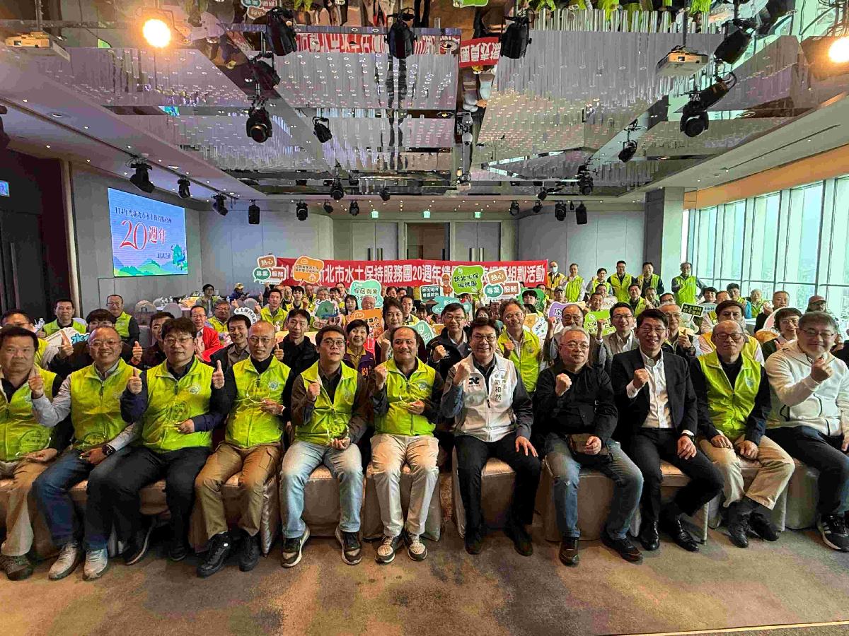 新北市政府於今(28)日辦理「新北市水土保持服務團成立20週年」表揚暨組訓活動,副市長劉和然頒獎表揚5位在水土保持服務團服務滿20年的績優貢獻團員,感謝這群無私奉獻並致力將水土保持觀念導入新北市每個角落的英雄。新北水保服務團20年來協助市府水土保持服務案件達上萬件,專業服務已連續5年獲得農業部評核為全國績優水保服務團的肯定,由陳盈男團長代表將114年度全國績優服務團之獎座獻予市府,期望透過表揚團員暨組訓活動凝聚水保服務團守護新北市坡地安全的共識。