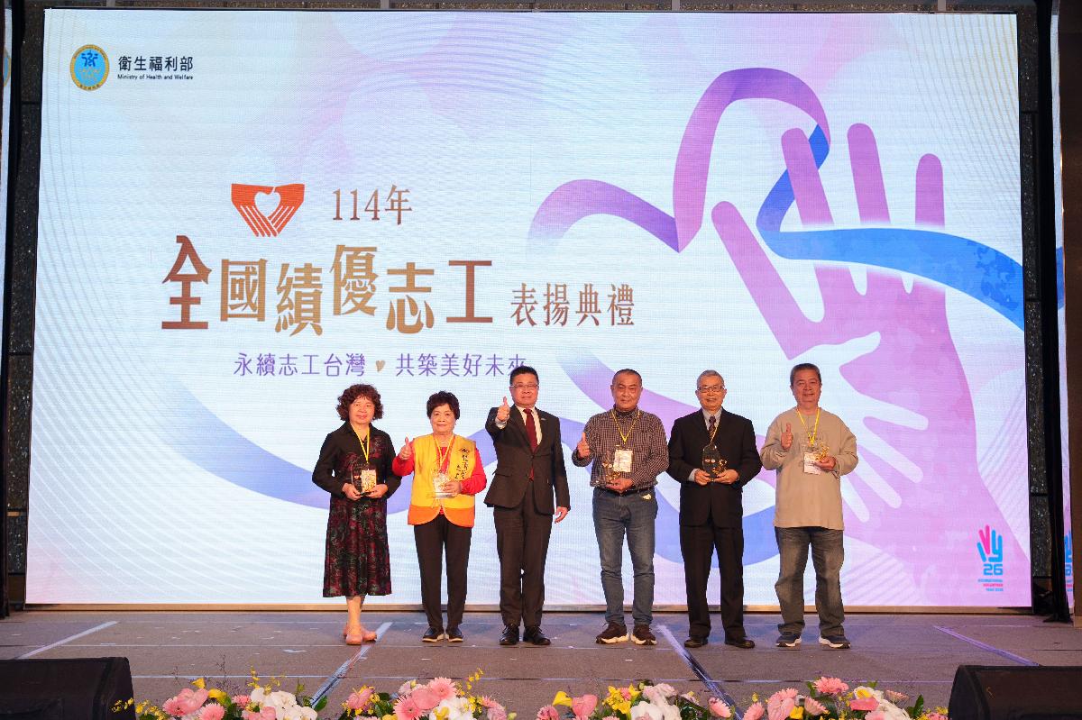 花蓮馬太鞍溪堰塞湖災害事件中,「鏟子超人與各行各業專業超人志工」讓各界見證「臺灣志工」的力量,臺灣許多角落都有志工的投入與支持,推動著社會前進。衛生福利部為慶祝「國際志工日」、弘揚志願服務精神,於本(114)年11月28日下午在大直典華幸福大樓盛大舉辦「全國績優志工表揚典禮」,表揚5位獲衛生福利特殊貢獻獎志工、25隊績優衛生福利志願服務志工團隊及777位服務時數達8,000小時以上獲全國「金牌獎」志工。衛生福利部呂建德次長親臨現場頒奬,感謝志工夥伴無私付出與努力,展現臺灣社會的溫暖與韌性。