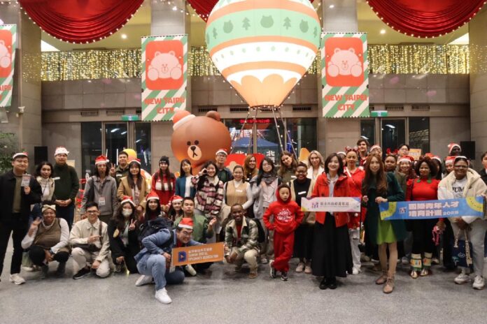 青年是國民外交的第一線!新北市政府青年局昨(28)日邀請17位完成「國際青年人才培育計畫」的青年擔任城市外交大使,為駐台外交官與來自18個國家的在台外籍學生進行導覽,全程以英語介紹新北歡樂耶誕城的文化背景與2025「馬戲嘉年華」主題,讓新北青年實際體驗第一線國民外交,並展現跨文化溝通能力。