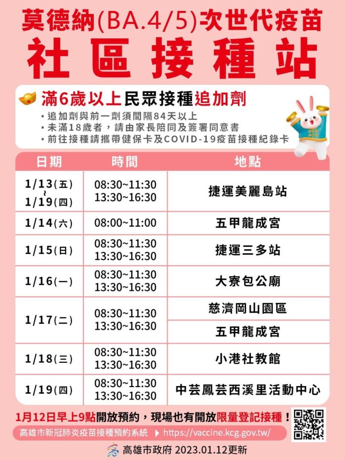 南部新聞高雄市【衛生局】1/12更新莫德納次世代疫苗社區接種站