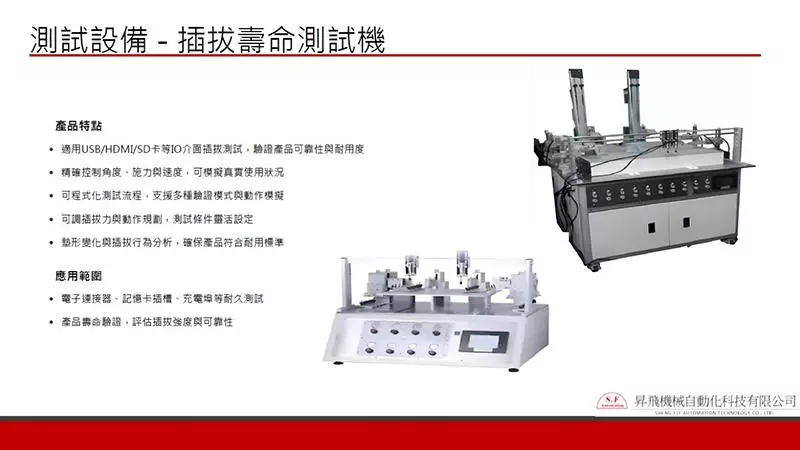 昇飛機械製造的自動化生產設備及測試設備如下: