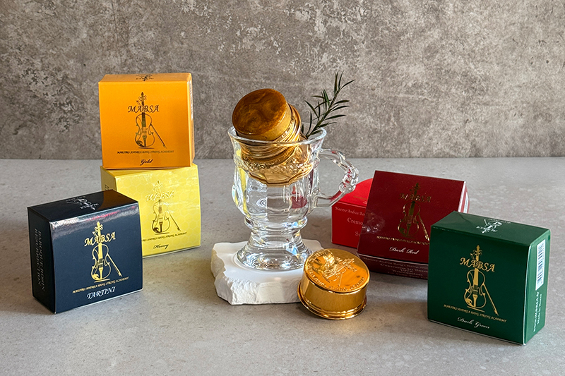 每一款 Mabsa 松香,都是經過反覆實驗與演奏測試後的結晶。從黏性控制、音色表現、粉末細緻度,到演奏手感的平衡,細節都藏著大師的講究與堅持。不只外觀精緻,馬莎松香更主打「對應不同樂器、場合與演奏者個性」來設計獨立配方,真正做到為每一位演奏者量身打造。不僅音色細膩,還兼顧抓弦力、黏性與過敏友善設計。
