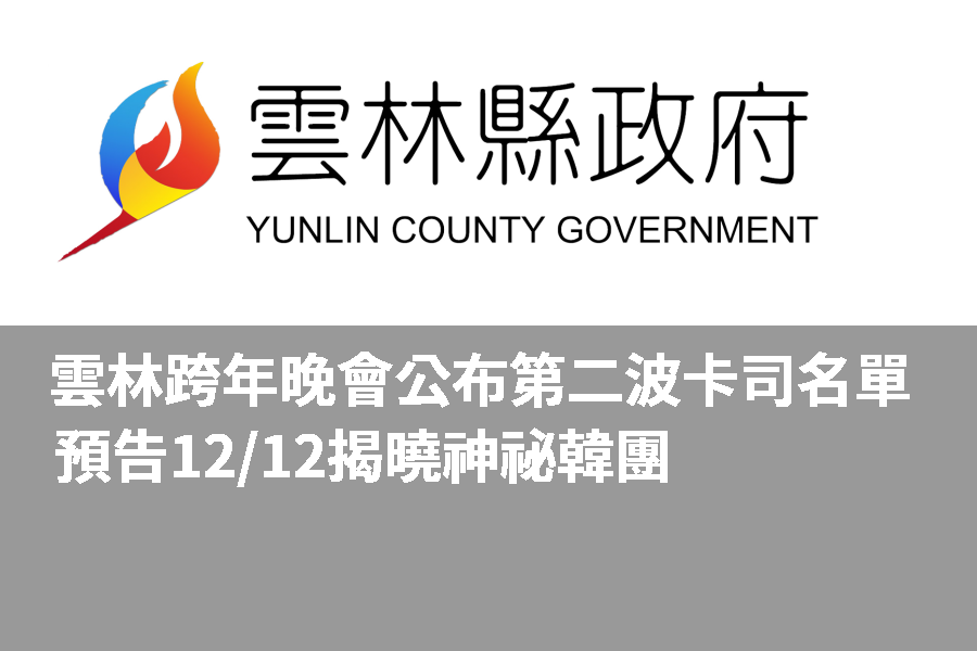 睽違12年再度重返的雲林跨年晚會,將在全新啟用的雲林縣立田徑場展開!繼日前公布首波卡司引起踴躍迴響後,雲林縣政府今(1)日釋出第二波卡司,集結6組唱將團體包括人氣男團「AcQUA源少年」、全能性感新偶像「薛恩」,其中更獨家邀請R&B女神「Julia吳卓源」、金曲CP組合「慢慢說」、浪漫搖滾「甜約翰Sweet John」、西岸嘻哈「西屯純愛組」,將以浪漫系輕甜情歌,帶來甜蜜氛圍席捲田徑場,另也預告最重磅、超神秘韓團卡司將於12月12日縣府記者會由縣長張麗善親自揭曉,期待雲林跨年晚會的粉絲們千萬別錯過。