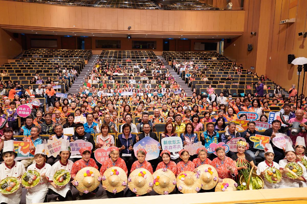 新北市2日上午在3樓多功能集會廳表揚第15屆金志獎,共有8個志工團隊、50位志工、56位耆心獎(高齡志工)及5位志工督導獲獎。侯友宜市長表示,志工是守候新北市這座404萬人口城市最溫暖的力量,讓社會更祥和。他也鼓勵男性多走來參與志願服務,身體會更健康、更長壽,以免老待在家裡變成「老孤孓」。