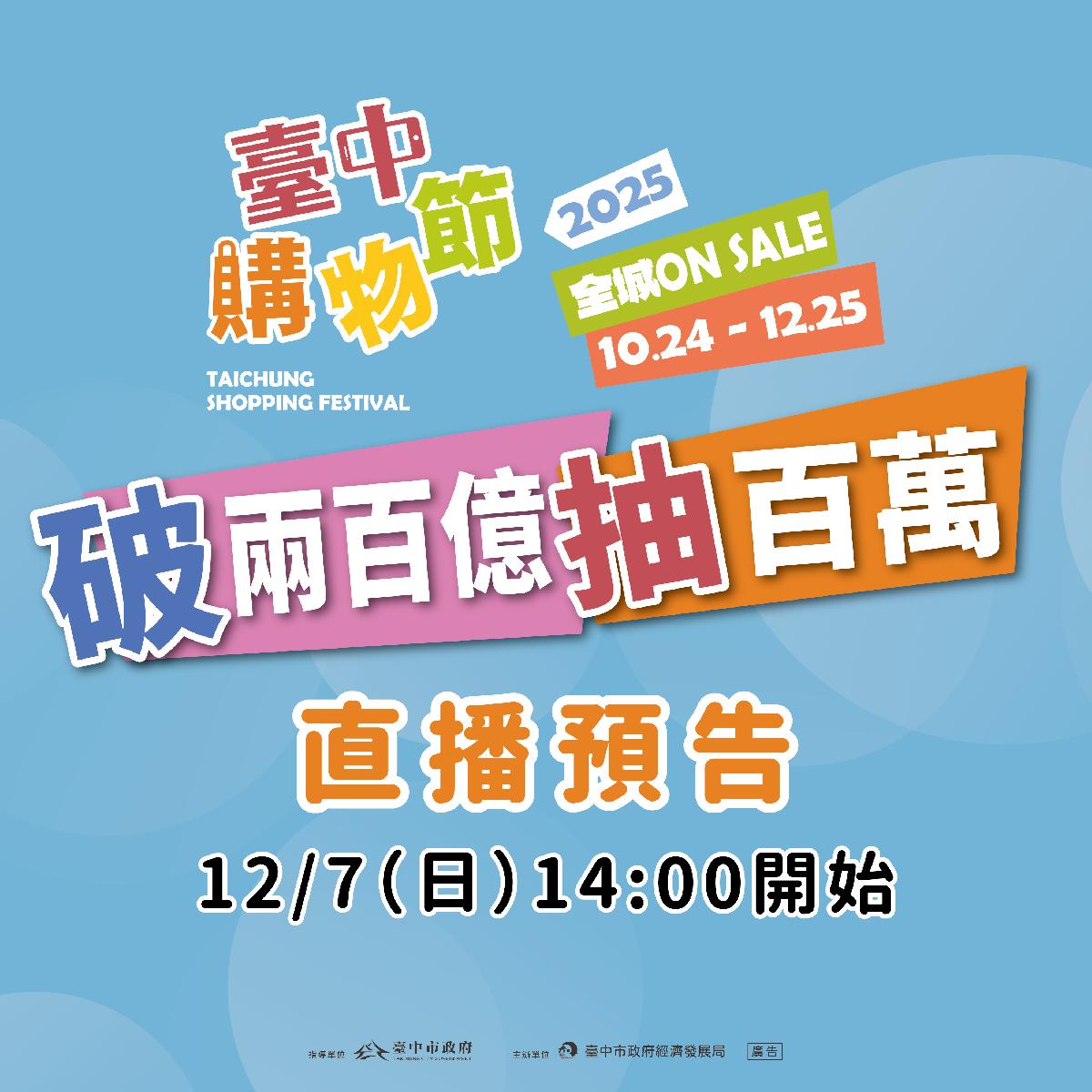 買氣強強滾、消費續創高峰!2025台中購物節開跑僅39天,登錄金額昨(1)日正式突破200億元大關、達208億元,僅用16天就再添一個百億商機。為感謝民眾熱情參與、持續帶動城市經濟,台中市政府經發局宣布將於12月7日下午在大里公園舉辦的「屯區GOGO購」活動加碼「百萬現金獎項」,誕生今年第4位百萬得主,同場也將開出第二個外籍專屬1萬美金大獎。