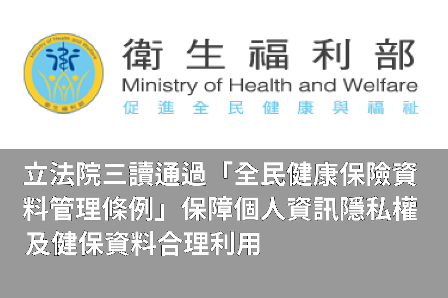 衛福部再次感謝朝野立法委員、專家學者及各界之支持,透過本次立法,完善健保資料治理法制,強化個資保護、推動健保資料之合理利用,增進全民健康福祉。