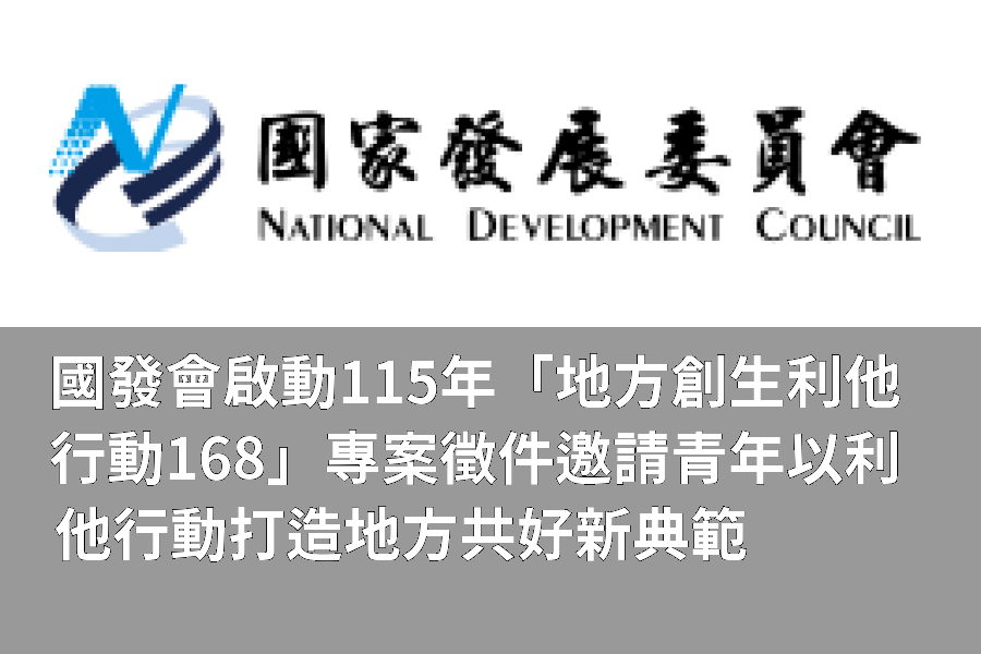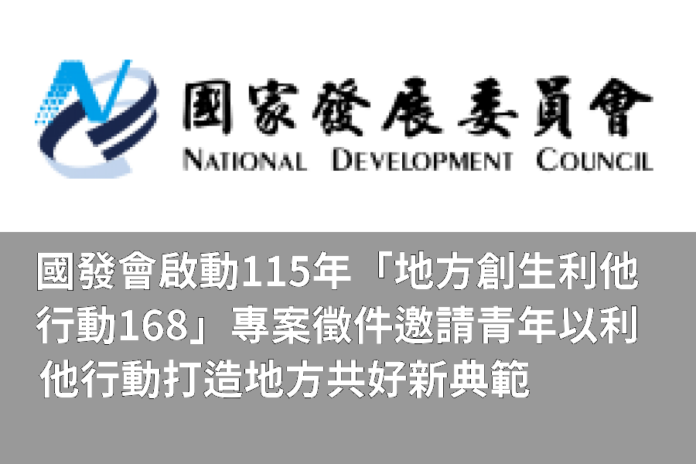 國發會自112年起推動「獎勵青年投入地方創生行動計畫」,3年間已成培力青年創生種籽的重要培養皿,至今累計輔導199組團隊,並鏈結企業資源,協助團隊優化營運體質、提升在地札根能力,讓團隊更被市場與企業看見,打開更多合作與跨域發展機會。「地方創生利他行動168專案」將帶領創生新血邁向新局,誠摯邀請全臺熱血青年朋友共襄盛舉。