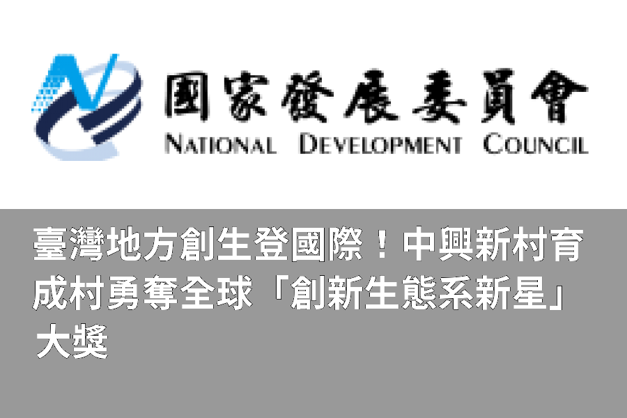 臺灣地方創生獲得重大國際肯定!由國家發展委員會(國發會)推動成立的「中興新村地方創生育成村」,在國際競爭中脫穎而出,榮獲國際商會(ICC)及全球開放創新基金會(Mind the Bridge)主辦之 2025 年度「創新生態系新星」(Startup Ecosystem Rising Stars)大獎。