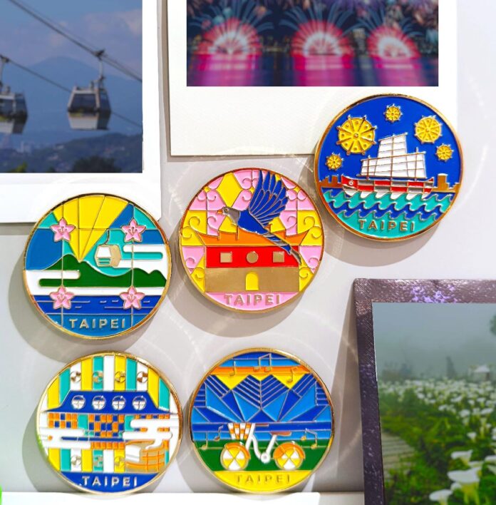 觀傳局表示,磁鐵兼具輕巧便利與實用性,一直是旅客最常購買的紀念品之一,本次以臺北街巷常見的窗花圖案,融入城市地標與文化風景,打造具設計性、文化性與實用性的「臺北城市紀念品」。五款「台北窗花磁鐵」,包含城南款以臺北市市花「杜鵑花」搭配俯瞰城市景致的「貓空纜車」,呈現城南風光與自然交織的浪漫;城西款以「臺灣藍鵲」及歷史地標「北門」,呈現建築記憶與城市生態並存的獨特氣質;城西慶典款以承載歷史的「戎克船」與繽紛奪目的「大稻埕煙火」,交織成復古與慶典感兼具的畫面;東區以「臺北流行音樂中心」的線條,搭配穿梭街區轉動的「自行車」,象徵東區活力、創意與城市律動感;北區款則以「新北投車站」與繚繞白霧的「溫泉」意象打造療癒氛圍,呈現溫潤、悠閒與人文自然共存的療癒旅程,每款磁鐵都是極具臺北城市意象及文化創意。