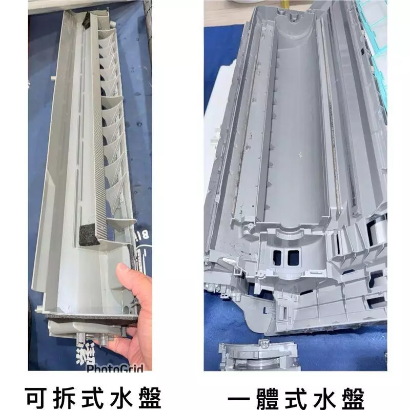 由於可拆式水盤可以在不拆卸機板的前提下就能拆下水盤,水盤拆下後風鼓才能拆下清洗,所以可拆式水盤的分離式冷氣大多建議使用「一般掛洗」清洗即可。