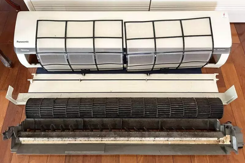 拆下清洗:冷氣外殼、濾網、水盤、風鼓