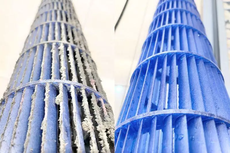 但風鼓若只掛在機子上清洗,因為清洗角度會受限制,無法徹底洗淨風鼓葉片內側及凹槽的髒汙,因此風鼓要拆下清洗才能確保沒有髒污殘留!