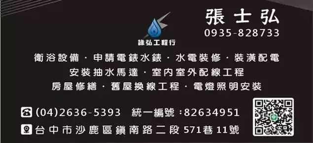 關鍵字組:台中水電工程,沙鹿水電工程,台中水電維修,沙鹿水電維修,台中居家水電維修,台中店面水電,台中家庭水電維修,台中廠房水電,台中衛浴設備安裝,台中水電裝修,台中電力申請,台中裝潢水電,台中電錶申請,台中水錶申請,台中配電工程,台中抽水馬達安裝,台中室內配線工程,台中房屋修繕,台中室外配線工程,台中舊屋翻新,台中舊屋換線工程,台中燈具安裝,沙鹿舊屋換線工程,沙鹿燈具安裝,台中照明工程,台中水管漏水處理,清水水電,梧棲水電,龍井水電,大雅水電,西屯水電,神岡水電