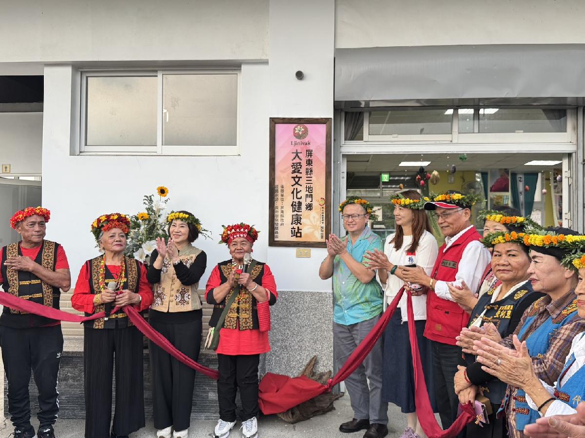 藝術文化原民會社福處羅赫踛Helu Chiu處長出席屏東縣三地門鄉大愛文化健康站揭牌儀式,原民長照服務再升級