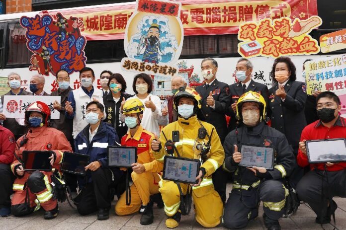 1月19日的「119消防節」將至,嘉義市政府消防局特於今(12)日上午召集消防及義消同仁,於國定古蹟嘉邑城隍廟舉行諸位神尊暨水德星君祭拜祈福儀式並結合捐血活動,號召市民一同捐血助人。城隍廟方也於消防節前夕響應活動,致贈消防局14台總價達25萬元救災平板電腦,以提升救災人員安全。祈福儀式由嘉義市長黃敏惠擔任主祭官,黃市長感謝城隍廟秉持城隍慈悲精神,以科技守護消防弟兄平安,也祈求風調雨順、無災無害,並呼籲市民一同挽起衣袖,加入捐血行列。 黃敏惠市長表示,嘉義市近年不斷提升專業救災設備,為進出現場搶救的消防人員提供保障,今年消防局以「搶救進化I+E-幸福全『嘉』守護您」奪得衛生福利部111年臺灣健康城市暨高齡友善城市─「韌性與創新獎」,代表對嘉義市「智慧救災」觀念的肯定,消防局透過建置數位系統,以掌握消防人員救災時的呼吸量、空氣存量並了解火場地形,以精準的數位科技守護消防人員安全。 黃敏惠市長感謝總是站在第一線的消防人員,以專業守護人民生命財產安全,感謝義消志工共同努力,以自發的民間力量為守護嘉義市提供堅定支援,也感謝城隍廟的仁風善舉,大力捐贈救災平板,讓消防弟兄進出救災現場更加安全。「天助自助者」,所有人的共同努力凝聚成為善良而正派的力量,一同為守護嘉義市努力。 嘉邑城隍廟董事長賴永川表示,城隍廟慈善會秉持城隍慈悲的精神,感念於近年消防人員救災事故,為提升消防人員救災生命安全保障,捐贈消防局14台救災平板電腦價值共25萬元,期待救災平板以數位智慧及時幫助消防人員有效管理火災現場,維護救災、火場出勤之消防人員生命安全。 嘉義市政府消防局以「搶救進化I+E-幸福全『嘉』守護您」為主軸,勇奪衛生福利部111年臺灣健康城市暨高齡友善城市─「韌性與創新獎」及「海報獎(銅獎)」雙大獎項。消防局表示,111年本市火災件數計有67件,另外OHCA累計通報數為288,成功救回63人。119消防節將至,感謝警消、義消、志工及宣導隊人員同心協力,期待新的一年在智慧救災系統的輔助下,能讓災害損傷降至最低。 本日祈福儀式結合捐血活動,捐血巴士停放於城隍廟埕,並號召消防弟兄及眷屬一同捐血,熱血之舉為活動增添溫暖。黃敏惠市長也呼籲,冬季血庫存量長期偏低,期待民眾一同加入捐血行列,以熱血助人。