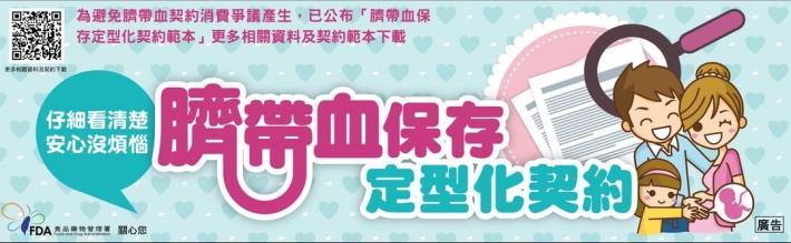 迎接家中新生命到來時,許多新手爸媽冀望透過保存新生兒的臍帶血,以備未來治療疾病之需求,但目前臍帶血在醫學上的效用多數處於臨床試驗階段,對於未來醫療應用及發展還存不確定性,加上臍帶血寄存周期長達10至20年且費用不貲,為保障消費者的權益及督促業者履行義務,衛生福利部於100年9月8日頒訂「臍帶血保存定型化契約應記載及不得記載事項」,並於101年7月24日公告修正「臍帶血保存定型化契約範本」,規定業者不得以任何形式或廣告保證,保存之臍帶血在現在或未來可以治療任何遺傳性、血液及其他疾病或不可預期之醫療效用,且需確保廣告的真實性,對產婦所負之義務不得低於廣告內容。