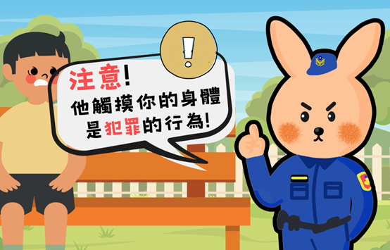 另外北市警婦幼隊也指出,在實務處理兒童性侵害案件時,常見加害者利用「這是我們的小秘密」、「不要告訴別人」、「說出去會被罵」等話術引導孩子保持沉默,使受害延遲曝光,甚至讓加害者持續傷害其他孩子。而警方在活動現場播放自製的宣導動畫,告訴孩子,除了必要的醫療照護外,只要感到不舒服的觸碰身體隱私部位,就是犯罪行為。另外為了讓孩子留下更深刻的印象,也帶來與動畫同款的警察兔子人偶現場互動,並示範面對不舒服的碰觸時,表情應嚴肅拒絕,也可找三個以上信任的大人求救,因為加害者也許是自己認識的人,要讓孩子知道不是只有一個可以求救的人。經過實際反覆練習,讓動畫內容從螢幕延伸到真實世界,使幼兒在溫馨安全的環境中建立自我保護能力。