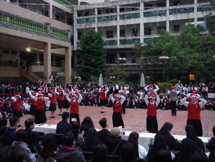 活動在聖心幼兒園孩子們的表演中展開,隨後由七年級新生及校內舞團帶來活潑的聖誕舞曲,展現青春活力與節慶氛圍。由高一年級20位男同學穿著聖誕老人服飾的勁舞演出則為全場帶來高潮,象徵年輕世代以創意與熱情迎接佳節。