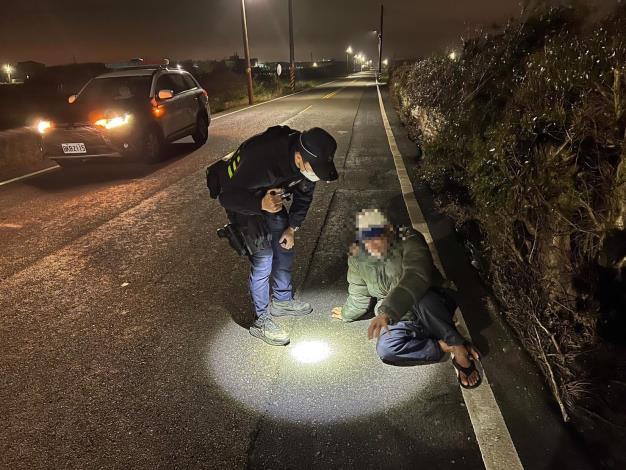 苗栗縣警察局竹南分局後龍分駐所所長楊旭中、警員彭炫瑜於112年1月11日0時20分許,接獲民眾報案稱,在後龍鎮苗11線上,有一名老翁跌坐在地,亟需警方協助,員警趕緊驅車抵達現場。