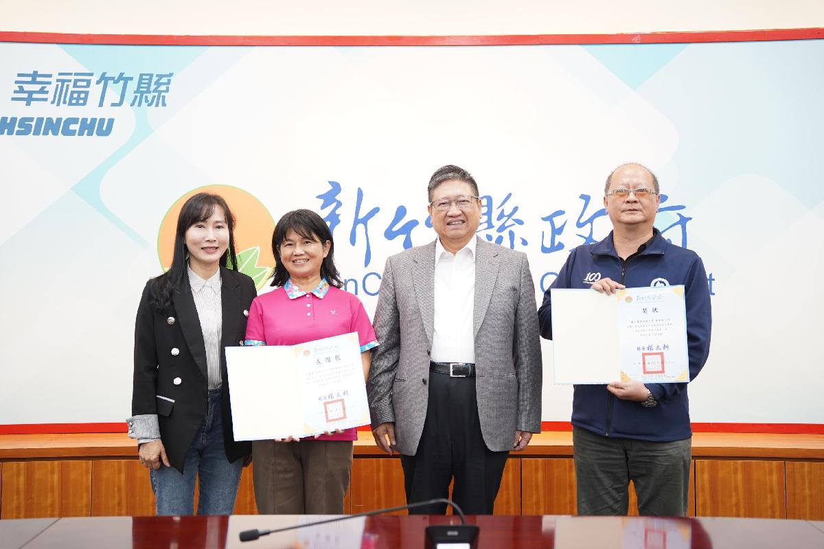 教育部主辦「第9屆教育部閩客語文學獎」,國立關西高級中學學生一口氣抱走客語散文組全國前三名及小說組兩座大獎,今(9)日主管會報前,縣長楊文科親自表揚指導老師范雯鈴,並由教務主任呂建興代領得獎學生獎狀。楊縣長肯定師生對本土語言的熱忱與貢獻,充分展現新竹縣多年深耕客語教育之扎實成果。